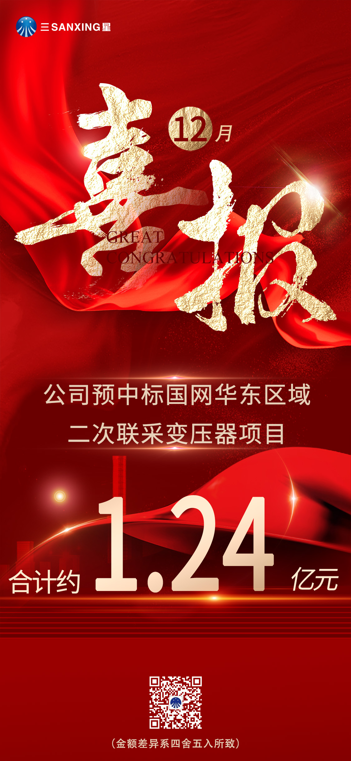 喜报丨公司预中标国网华东变压器采购项目合计约1.24亿元!